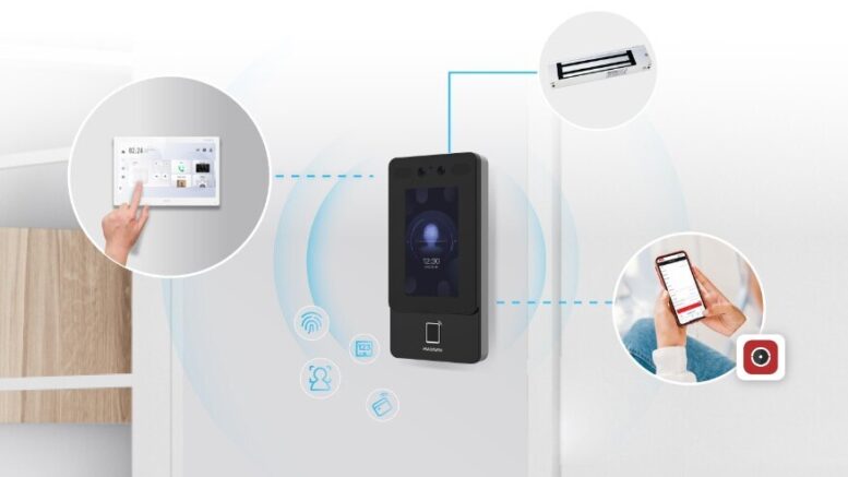 Instead of tapping cards or scanning fingerprints, users simply walk up to the device and look at the camera. The system then grants or denies access automatically.